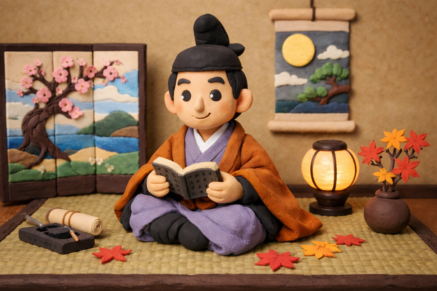 藤原定家(ふじわらのさだいえ/ていか, 1162〜1241)は、鎌倉時代の初期に活躍した有名な歌人です。短い詩である「和歌」をととのえ、日本の美しさを感じさせる表現を高めた人として知られています。とくに『新古今和歌集』という歌の集まりを作るメンバーになり、その編集では「しずかで深い気持ち」「季節のうつろい」「言葉のひびき」をたいせつにしました。